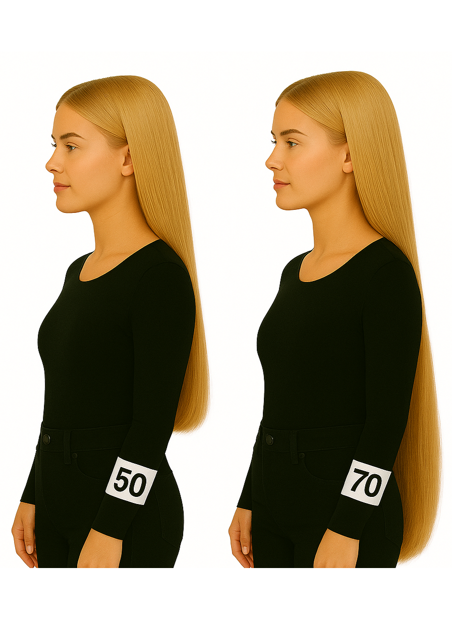 Für klassische Haarverlängerungen und Verdichtungen, bei normal voluminösem Haar, empfehle ich: